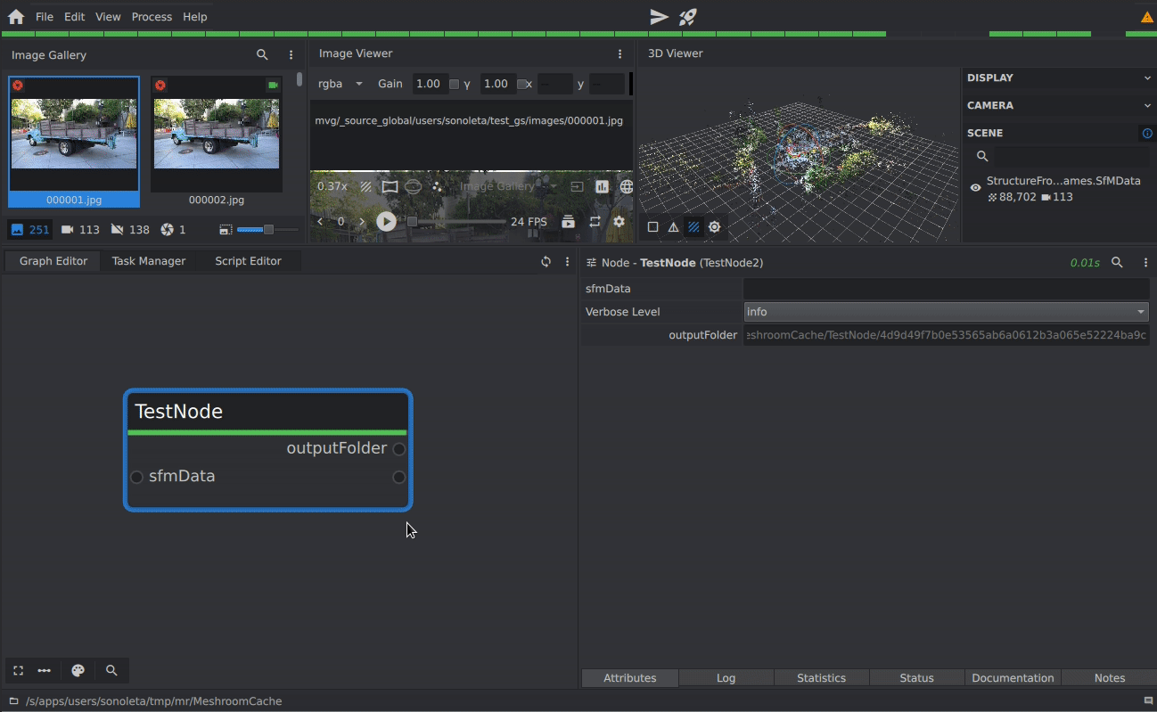 meshroom_batch) for headless execution and integration into automated pipelines. - JSON-based pipeline definitions for reproducibility and version control.